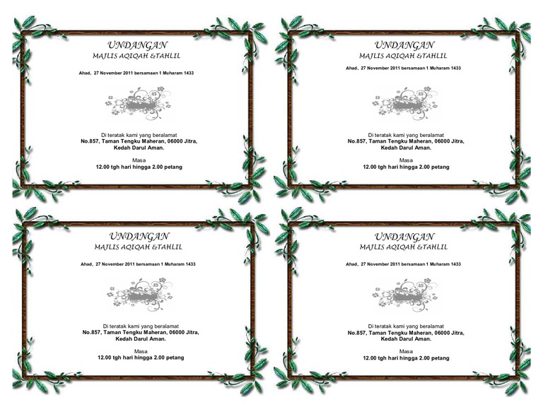 Contoh Kad Jemputan Majlis Cukur Jambul Dan Tahlil